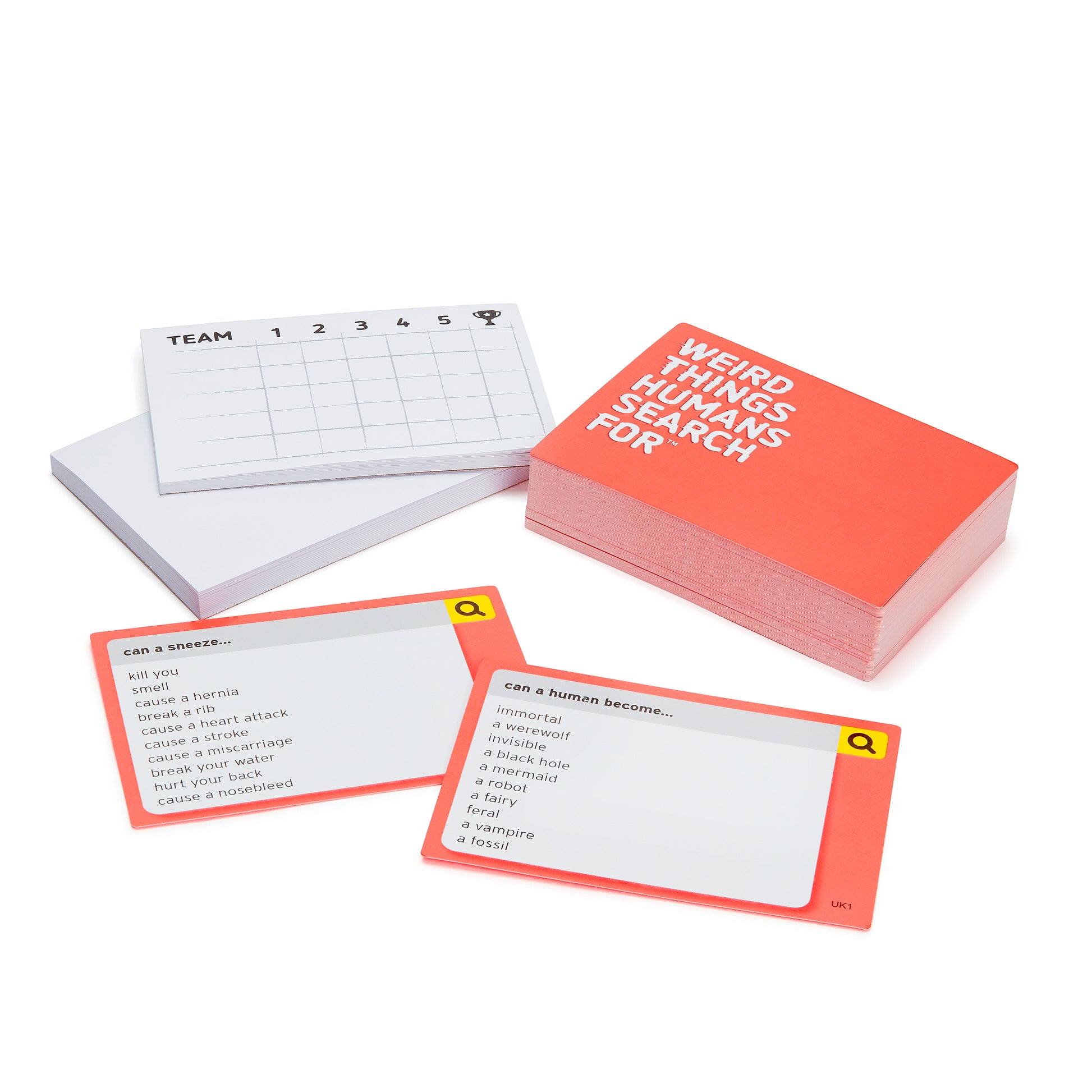 THE STRANGE SIDE OF GOOGLE: Each round, you’ll hear the first half of an internet search. It’s up to you and your teammate to figure out what came next. For example, “Help I’m stuck…”.
